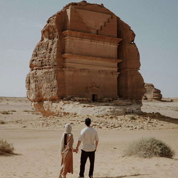 Travel through dramatic deserts including the vast Nefud Al Kabir and the sandstone formations of AlUla. Stand before Elephant Rock, walk ancient oasis towns, and drive through landscapes untouched for centuries.