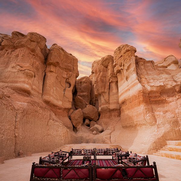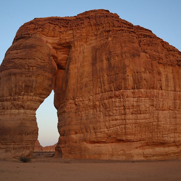 Arrive in Al-Ula, a breathtaking desert valley filled with palm groves and giant rock formations. Visit Elephant Rock (Jebel Al-Fil), an iconic sandstone monolith rising dramatically from the sands.